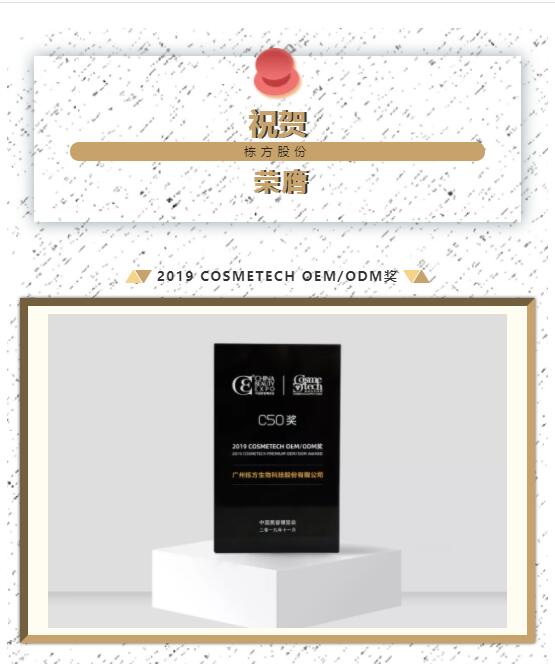 祝賀棟方股份榮獲全球美妝供應鏈權威大獎——2019 COSMETECH OEM/ODM獎