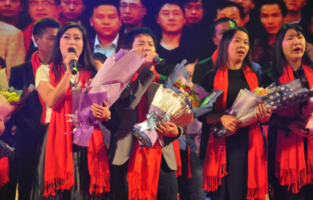 唐總帶領(lǐng)十年老員工深情演繹《光陰的故事》,感動全場。