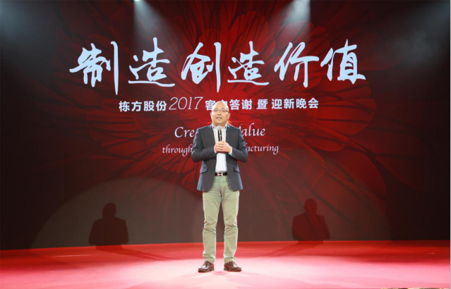 2017年1月12日,棟方股份“制造創(chuàng)造價(jià)值”2017客戶答謝暨迎新晚會在廣州華鉅君悅大酒店盛大舉行。棟方股份董事長唐新明先生、青島金王集團(tuán)董事總經(jīng)理唐風(fēng)杰先生與數(shù)百名棟方人盛邀棟方客戶、合作伙伴及行業(yè)內(nèi)外眾多重量級嘉賓,齊聚花城,共襄盛舉。