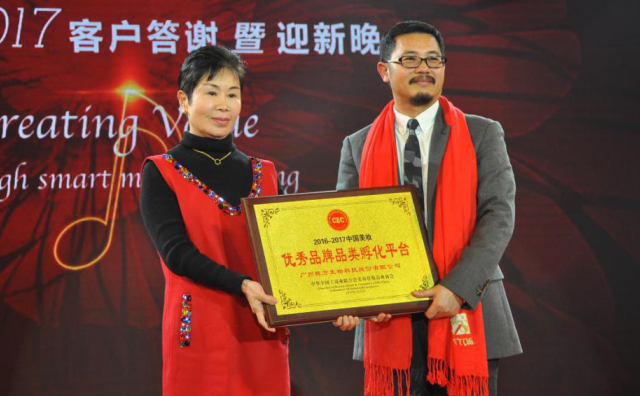特別值得一提的是,馬婭會長在發(fā)言完后現(xiàn)場為棟方股份特別頒發(fā)了“中國美妝優(yōu)秀品牌品類孵化平臺”的獎(jiǎng)牌,高度肯定了棟方股份在這方面的杰出貢獻(xiàn)。
