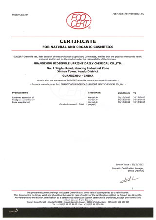○ 歐盟ECOCERT天然有機化妝品生產(chǎn)認證證書