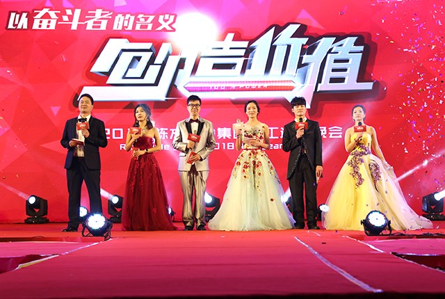 棟方股份集團(tuán)倪總、邱副總分別登臺作工作匯報,帶領(lǐng)大家回顧了2017年公司的蛻變、發(fā)展之路,并向全體家人送上了新春祝福。