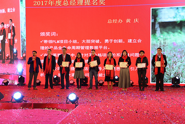 正如唐董所言,2017是不平凡的一年!過去的一年,公司除成功達(dá)成重大項目之外,還涌現(xiàn)了大批優(yōu)秀的團(tuán)隊、個人。為感謝他們在各自崗位上付諸的努力,公司依次頒發(fā)了優(yōu)秀項目獎、優(yōu)秀團(tuán)隊獎、明日之星獎、棟方風(fēng)范獎、總經(jīng)理提名獎、十年忠誠獎等十三個獎項,共計4大項目、5個團(tuán)隊與137名個人在此次年會上受到表彰。
