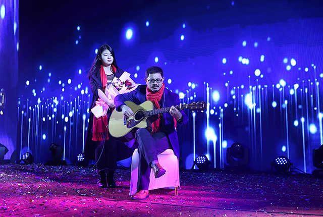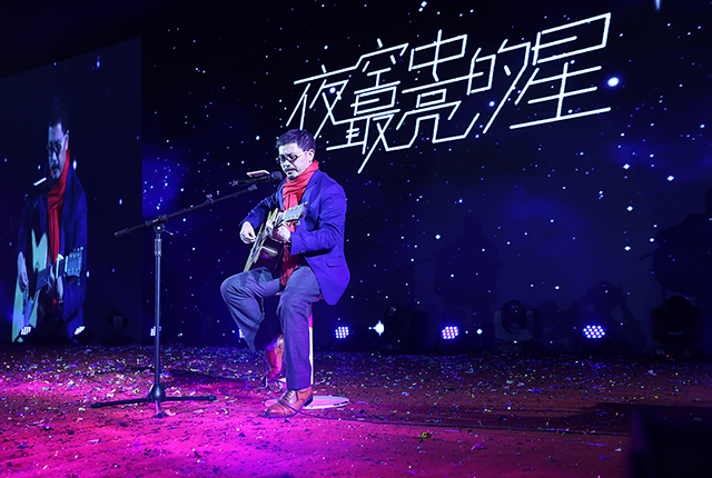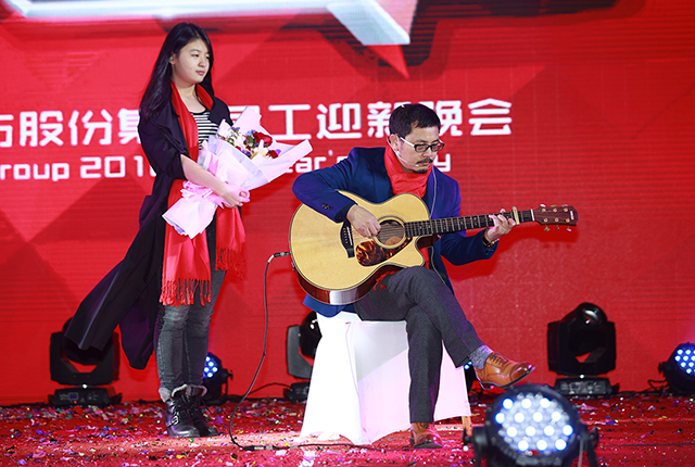 受現(xiàn)場氣氛感染,唐董也攜吉他登臺,即興彈唱了《夜空中最亮的星》、《當(dāng)你老了》,鼓舞棟方股份集團(tuán)的奮斗者們,在新的一年勇敢前行。