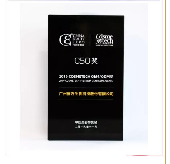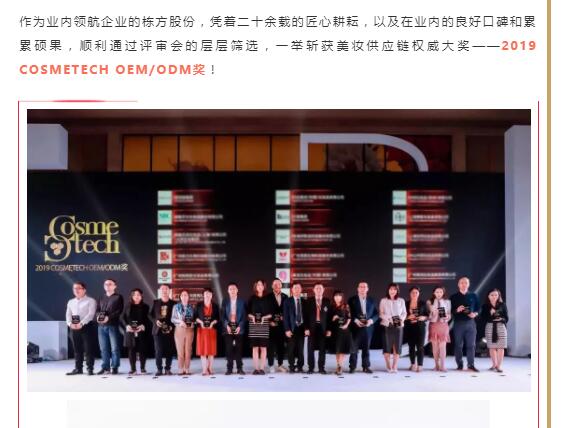 祝賀棟方股份榮獲全球美妝供應鏈權威大獎——2019 COSMETECH OEM/ODM獎