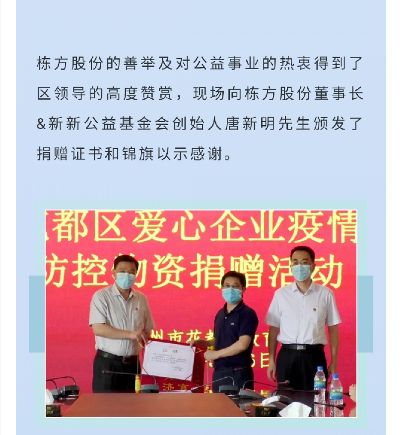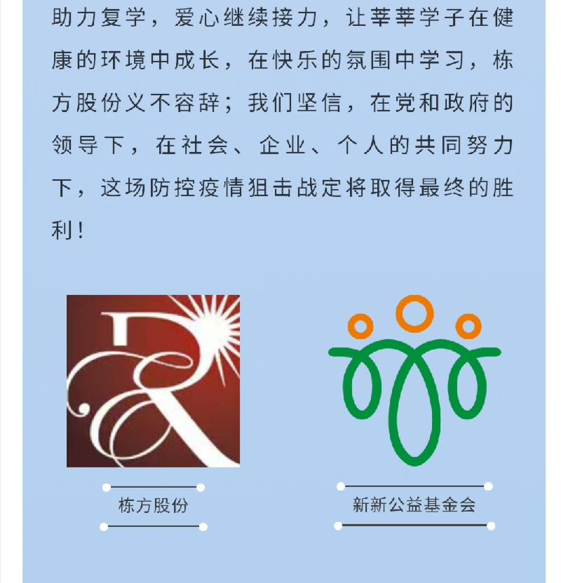 情暖校園丨棟方股份攜手新新公益基金會(huì)再度捐贈(zèng)防疫物資